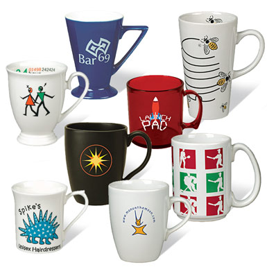 Bone China and Thermus Mugs all ready to be imprinted with your company's brand and message.