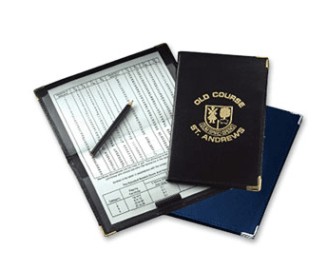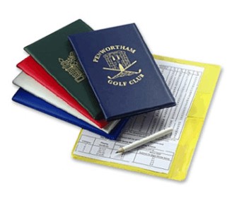 Smooth rigid PVC scorecard holder with a handicap chart and a plain
