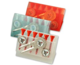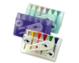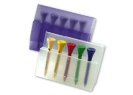 Plain translucent polypropylene wallet with six wooden tees, one